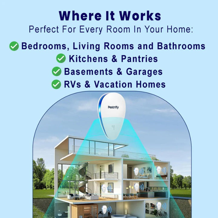 Yes! Pestrify™ not only repels existing bed bugs but also helps prevent new infestations by creating an uninhabitable environment for them. By continuously emitting ultrasonic waves, it keeps your space protected 24/7, making it difficult for bed bugs to return or spread. For best results, keep Pestrify™ plugged in at all times and use it in multiple rooms to maintain full coverage.